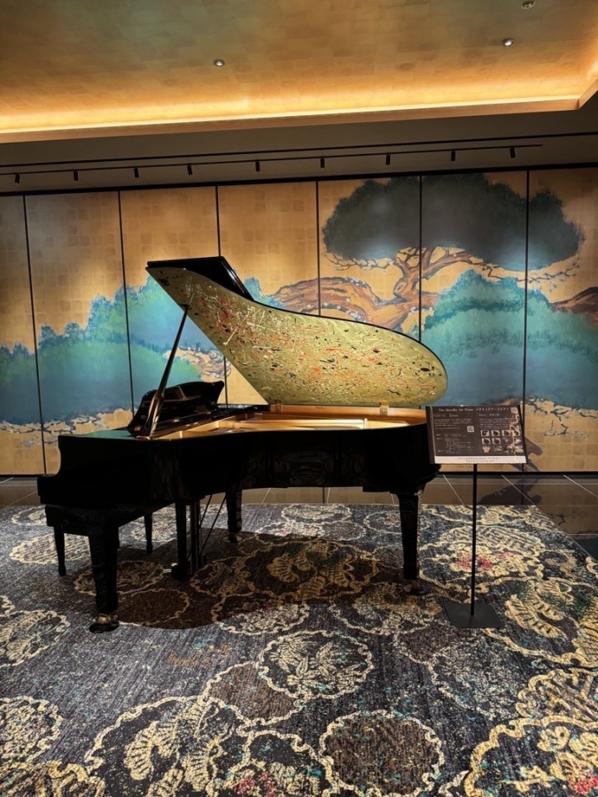2階には国内最大級のバンケットルーム「天守の間」があり、弊社オリジナルのアコースティックピアノ「ザ・メタリックアート・ピアノ〈エラボレートシリーズ〉」を設置しています。